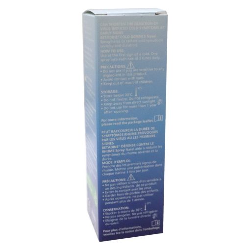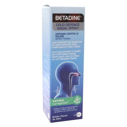 Betadine Cold Defense Nasal Spray is used for sustained moistening of the nasal mucosa, supporting the natural defense of the body against viruses and bacteria. A dry and irritated nasal mucosa may result from general air pollution or frequent stays in places with a low relative humidity such as heated or air-conditioned rooms, cars, trains and planes.