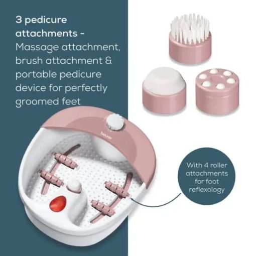 The Beurer foot bath with pedicure application and soothing massage with infrared light field combines relaxation and care for your feet. The FB 20 can be used in any room thanks to the removable splash guard.