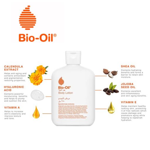 Bio-Oil Ultra-light Daily Moisturiser Body Lotion is a ground-breaking formulation, that aims to provide intense hydration and nourishment to the skin without leaving a greasy residue. With more than double the oil content compared to other moisturizers, it offers a lightweight and comfortable feel on the skin. The complex water-in-oil formulation of Bio-Oil Body Lotion combines water and oil in a way that allows for easy spreading and quick absorption. This means that the lotion can be applied smoothly and effortlessly, and it gets absorbed into the skin almost instantly. The result is a moisturized skin with silky-smooth texture. The ingredients used in Bio-Oil Body Lotion are sourced ethically and are carefully selected for their moisturizing and nourishing properties. These ingredients work together to provide hydration, improve the skin’s elasticity, and enhance its overall appearance. Bio-Oil Body Lotion generally contains a blend of oils, emollients, humectants, and other beneficial compounds. This is an ideal moisturizer for everyday dry skin and is suitable for dry and sensitive skin.