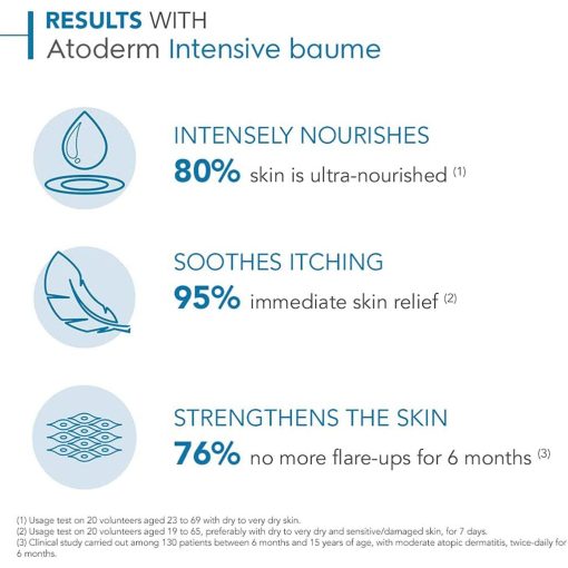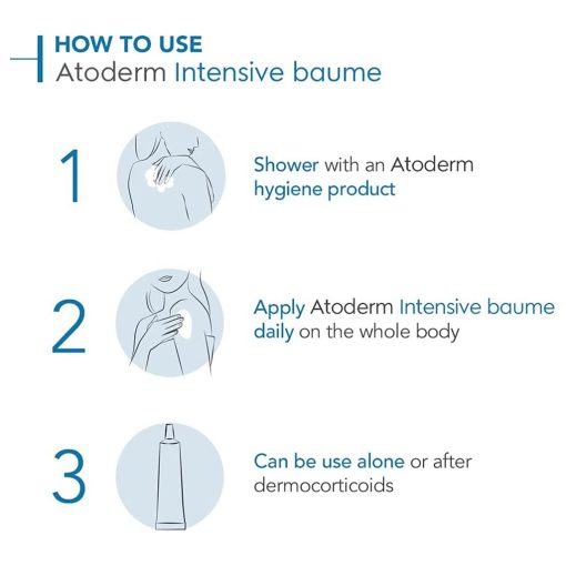 - Apply once to twice a day to face and body, after cleansing with Atoderm Intensive Gel Moussant. In combination with and as follow up to dermo-corticoids.