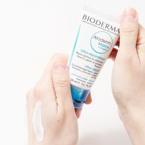 - Apply by lightly massaging Atoderm Mains and Ongles into your clean, dry hands. Repeat as often as needed and after prolonged contact with water.