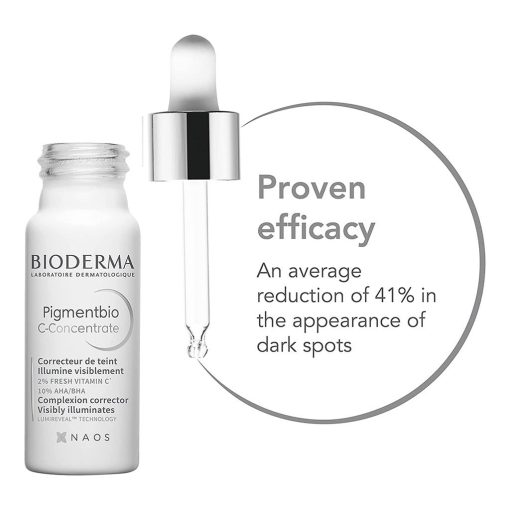 Bioderma Pigmentbio C-Concentrate Serum works on each biological stage of dark spot formation.It prevents the formation of new spots linked to skin damage and the resulting inflammation. It optimizes cell renewal to eliminate the excess melanin in cells.Contains high concentration in AHA offers peeling-like efficacy without attacking skin and provide 8 hours of hydration.