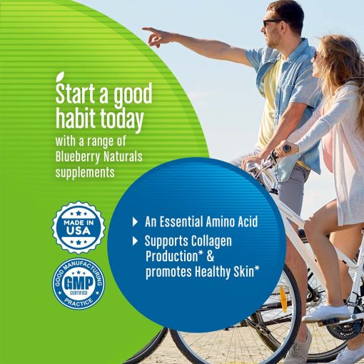 Blueberry Naturals L-Lysine Tablet contains L-lysine, an amino acid that is necessary for many bodily functions. L-Lysine is an essential amino acid. It supports collagen production and research suggests that it supports the health of tissue in skin and lips, and help limit cold sores. Lysine is an essential amino acid, it’s the building block for making proteins in the body. Lysine appears to help the body absorb calcium, it plays an important role in the formation of collagen, and it’s important for bones and connective tissues including skin, tendons, and cartilage. Scientifically formulated with ingredients of the highest quality and produced in a certified cGMP (current Good Manufacturing Practices) manufacturing facility, Blueberry Naturals holds your health, quality and safety in the highest regard.
