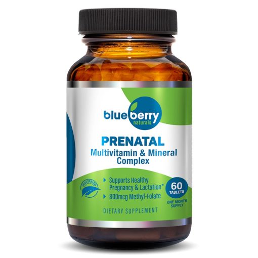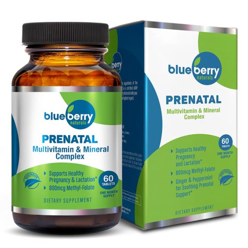 Blueberry Naturals Prenatal Multivitamin & Mineral complex delivers the vitamins and minerals you need most during your pregnancy. Blueberry Naturals Prenatal tablets are formulated with 26 essential multivitamins and 10 organic whole fruit & vegetable blend that supports Healthy Pregnancy and Lactation. In addition the tablets contains 800 mcg methyl folate, 4 important antioxidants A, C, E vitamins & selenium, 7 coenzyme b-vitamins for enhanced energy and 1 Billion CFU probiotic blend for digestive support. Blueberry Naturals Prenatal supplement is high in vitamins and minerals, packed with antioxidants, and contains anti-bacterial properties for healthy mums-to-be. Each Prenatal tablet also delivers 800 mcg DFE of Folate, otherwise known as Folic Acid and/or Vitamin B-9. Vitamin B12 and vitamin D are also particularly important since they support the development of the baby’s nervous system (B12) and skeleton (D). Adequate vitamin C intake also helps improve the adsorption of iron from your diet. Copper, zinc, selenium, and iron are vital minerals to support reproduction and prevent poor fetal development and complications at pregnancy. Blueberry pregnancy supplement is carefully designed to ensure quality, so you can trust that you are getting the essential vitamins and minerals you and your growing baby needs, also to support health and wellness.