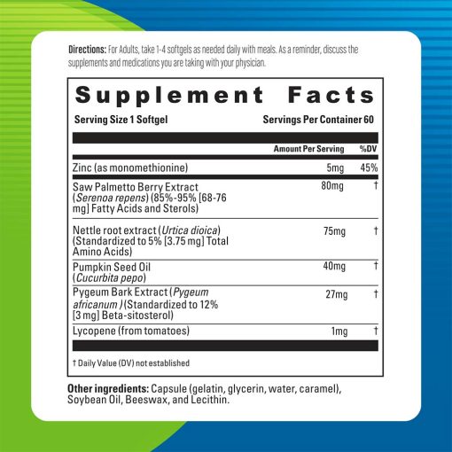 - With Saw Palmetto, Pygeum and Lycopene
