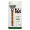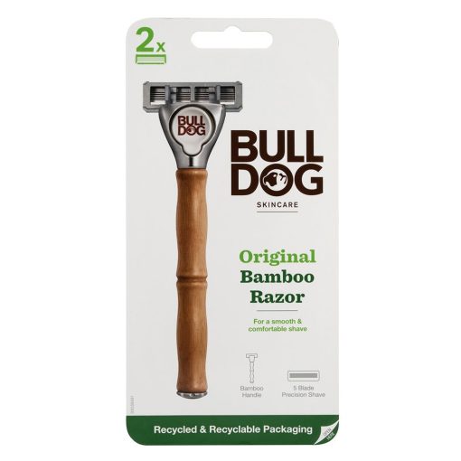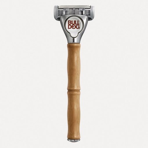 - To use Bulldog Skincare Original Bamboo Razor: First prepare the skin for shaving by exfoliating the skin. This removes dead and dry skin and helps to lift the stubble from the skin. It’s recommend using Bulldog’s Original Face Scrub for men. Wet face with warm water. Squeeze a 10p size amount of Original Foaming Shave Gel onto clean fingers and massage into your stubble. Lubricate your face with shaving gel or cream. Hold the Bulldog Skincare Original Bamboo Razor handle at approx. 30° so the blade is positioned at an optimal angle to the skin. Take short strokes in the direction of the hair. For a closer shave, reapply shave prep and take additional shaving strokes against the direction of the hair growth. Shave the skin going with the grain with a clean, sharp blade. Rinse off with warm water and pat the skin dry with a towel. Follow with Original Aftershave Balm, designed to soothe and moisturize the skin after shaving.