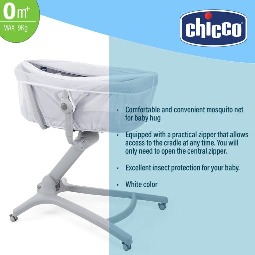 Chicco Mosquito Net For Baby Hug is a great method of protection for your baby from directly getting bit by harmful insects that lead to diseases which sometimes are deadly. Once installed, the mosquito net provides reliable protection and ensures extremely good air circulation. Chicco Mosquito Net is made of tightly knit fabric and guarantees total protection for your baby. It is also very easy to install thanks to the elastic edge and 2 seams. Easy to place, the Chicco Next2Me White Mosquito Net can be used as needed with the open or closed side. Equipped with a practical zipper that allows access to the cradle at any time, the Chicco Mosquito Net ensures a peaceful sleep for your child. Chicco Baby Products is an Italian company since 1951, that now sells products in more than 100 countries and is renowned for their top quality. Chicco has products that shall suit all the requirements of a child. Chicco makes a wide range of products like strollers, infant carriers, high chairs and more for infants and children.