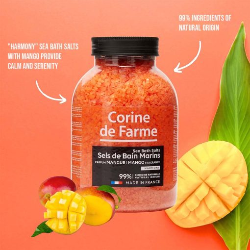Corine De Farme Sea Bath Salt Mango dissolve quickly in the bath and guarantee a moment of total well-being for your body and mind. It helps to indulge yourself with a moment of peace and total relaxation. These relaxing bath sea salts with mango wrap the body in a relaxing and calming hug.