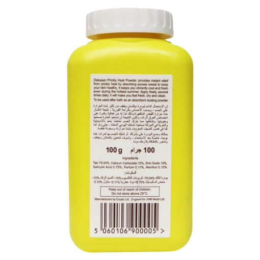Dekasan Prickly Heat Powder provides instant relief from prickly heat by absorbing excess sweat to keep your skin healthy.