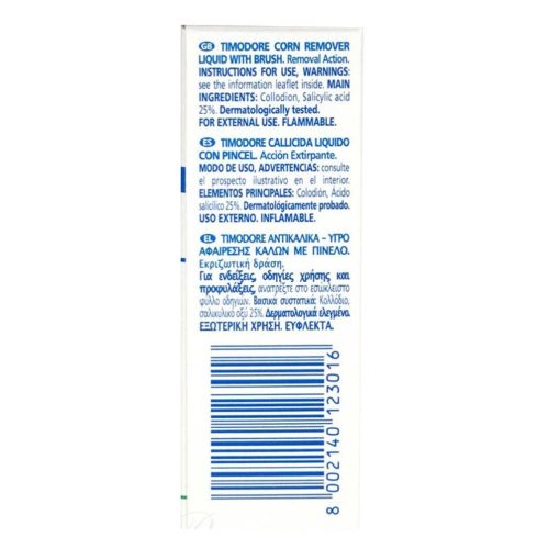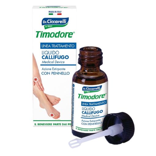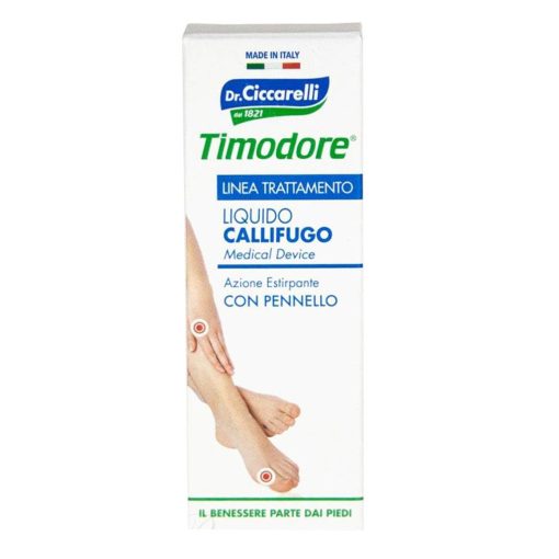 DC Callifugo Timodore Corn Remover Liquid with brush is the perfect solution to all problems caused by calluses on the feet. This formula containing collodion and salicylic acid, it removes corns and any type of callus in a few days, even the toughest and most resistant ones, without causing pain.