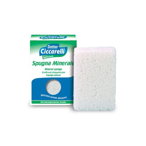 Mineral Sponge, used after a footbath, is the ideal product to eliminate any type of callosity and roughness from feet, hands and knees. It comprises a choice of rigorously selected minerals that, combined with water and soap, eliminate corns, calluses, hard skin and nicotine spots, paint and tar, returning suppleness and softness to the feet skin.