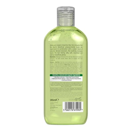 - Massage shampoo into wet hair. Rinse and repeat as necessary. For best results follow with Dr Organic Aloe Vera Conditioner.