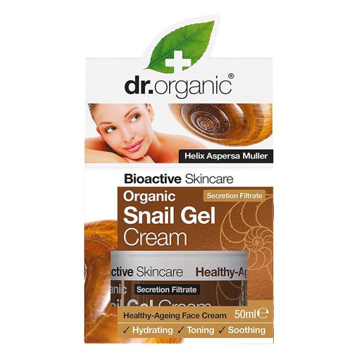 Dr Organic Snail Gel Cream combines a unique blend of bioactive, natural and organic ingredients with Helix Aspersa Muller secretion, a complex blend rich in proteins, glycolic acid, collagen and elastin that snails produce to regenerate and protect their own shells and skin when damaged. The combination of this unique substance with our proprietary blend of ingredients has resulted in an exceptional face cream formulated to restore the natural moisture levels of the skin, helping to soothe, revitalize and leave a luxurious feeling of firmness, tone and hydration.