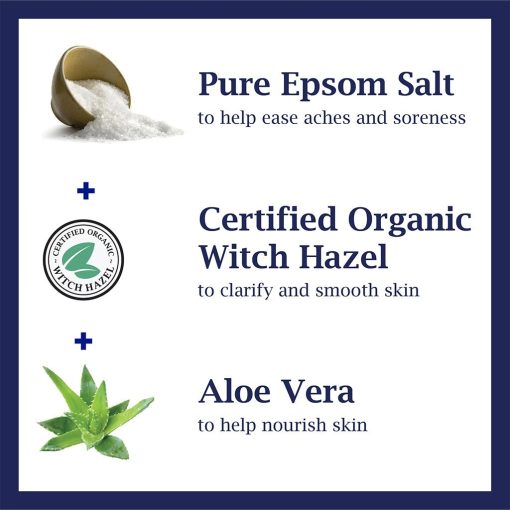 Dr Teal’s Foaming Bath With Pure Epsom Salt With Witch Hazel, Aloe Vera & Essential Oils combines pure epsom salt (Magnesium Sulfite USP) with a blend of certified organic witch hazel, aloe Vera, vitamin E and essential oils to revitalize tired, achy muscles to promote healthier looking skin. The clarifying formula has natural essential oils to soothe the mind and provide relief from stress.