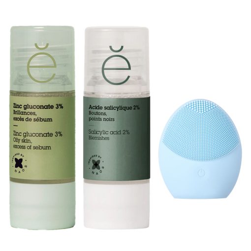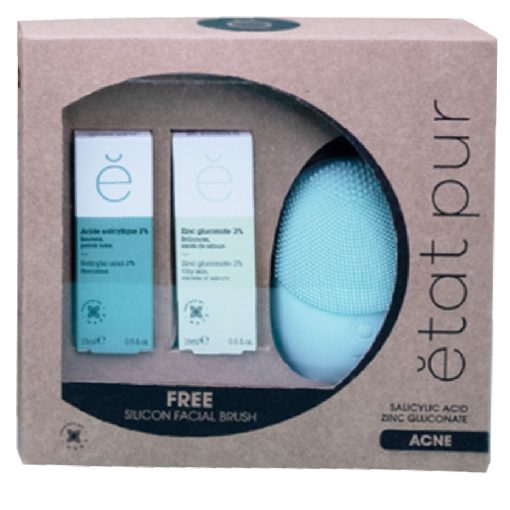 Etat Pur Zinc Gluconate 3% Serum is a concentrate that contributes to balance excess oil and purify combination and oily skin types. Zinc Gluconate has long been known for its antioxidant, sebo-regulatory as well as antibacterial properties, very important to balance combination to oily skin types. This formula contains a substantial concentration of 3% of this active, that besides regulating the sebum production, also promotes a healing and soothing action. Each application guarantees that the skin is free from excess oil throughout the day. As a result, the skin looks balanced, more even and deeply purified. Etat Pur Salicylic Acid 2% Serum is a genuine SOS treatment thanks to its high concentration (maximum dose allowed in cosmetics), this pure active reduces developing and established pimples in just a few days. Thanks to its keratolytic action, this pure Beta Hydroxy Acid (BHA) active stimulates cell renewal and helps eliminate dead cells accumulated on the skin’s surface. It visibly reduces blemishes upon appearance while refining skin texture. It unclogs and tightens pores to visibly reduce the appearance of blemishes and blackheads. Silicon Facial Brush deep cleanses pores, removing impurities, makeup and excess oil. It is rounded, softer, more hygienic, and gentler on the skin. The advantage is a much deeper cleanse than you can get using a cleanser on your hands or a face cloth and better makeup removal.