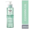 - Use a cherry-sized amount of Eucerin DermoPurifyer Oil Control Cleansing Gel and work it into a lather in your hand with a little water. Massage into your face. Rinse with lukewarm water. Avoid contact with your eyes