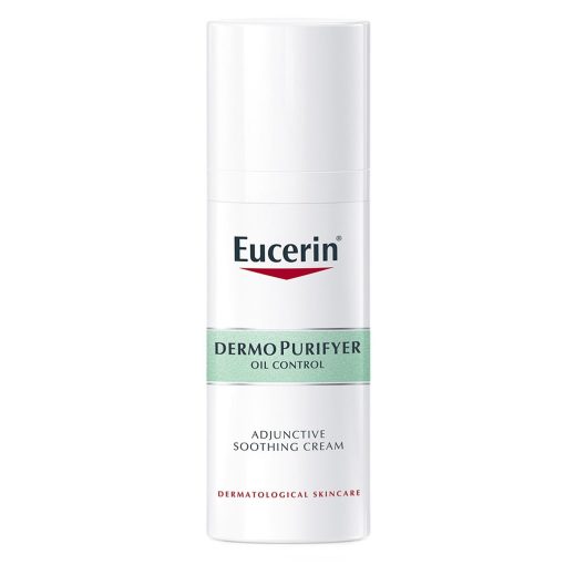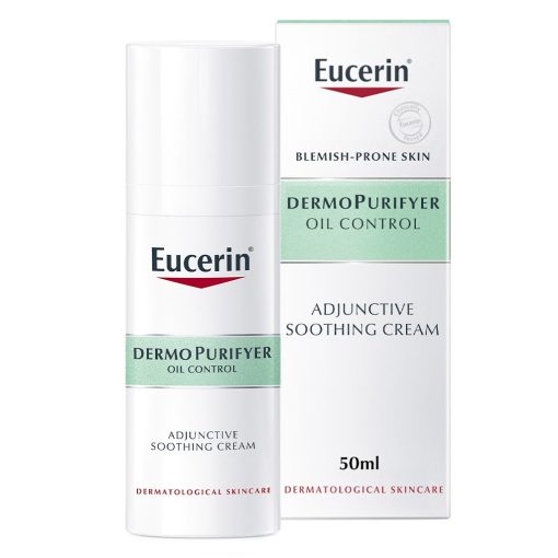 - Apply a chickpea-sized amount of Eucerin Dermo Purifyer Oil Control SPF 30 Adjunctive Soothing Cream to a thoroughly cleansed face (try Eucerin DermoPurifyer Cleansing Gel). Massage gently. Avoid contact with your eyes. Follow with an appropriate sun protection product such as Eucerin Sun Gel-Creme Oil Control Dry Touch SPF 50+. This is important to help prevent pigmentation issues in blemish-prone skin.