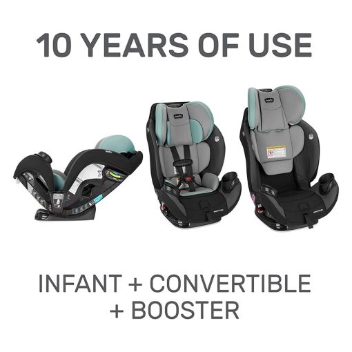 Evenflo Every Stage LX All-In-One Convertible Car Seat To Booster Seat, 0-10 Years, Nova delivers an unrivaled safety, comfort and installation experience. This all-in-one offers 10 years of safe and secure use as an Infant Seat + Convertible + Booster Seat, from 18 -54.4kg. Fully adjustable with up to 10 different positions, Every Stage offers an accurate fit for a growing child. The Every Stage LX is a rear-facing harness, forward-facing harness, and belt-positioning booster that provides a safe and secure ride for children up to 120 pounds. The Evenflo all-in-one car seat has been developed from the input of parents with a thoughtful design for everyday use. The Every Stage LX uses high-quality materials and is scientifically engineered for maximum comfort, safety, and flexibility. The LX rear-facing car seat features our Easy Click LATCH system that ratchets easily to achieve a tightness that is 3 times stronger than that of competitors.* It can be used as a rear-facing harness, forward-facing harness, and belt-positioning booster that helps keep children up to 120 pounds secure while riding in a vehicle. The seat has been designed for improved comfort and safety by angling the position of the child to help minimize head slump and keep her airway open. This all-in-one adjusts to multiple positions, allowing toddlers to stay rear-facing for longer-without having to extend the seat or cramp other passengers. Our car seat also includes a machine-washable seat pad and 2 dishwasher-safe cup-holders, which makes cleaning simple and effective. Evenflo tests all car seats to an energy level approximately twice that of the federal crash test standard. We take a proactive approach to the design of each of our multi-mode products for extended use or multiple-use applications, which saves you money without compromising the safety of your children. For nearly 100 years, Evenflo has been a trusted source of precision-manufactured, high-quality children products that are engineered for real-life situations. Additionally, all Evenflo car seats include Parent Link customer-service perks like real-time chat and free live video installation support. When used in booster mode, the booster seat requires a vehicle seat belt with a lap and shoulder belt combination to be properly installed. For nearly 100 years it has been Evenflo’s mission to find and provide products that help you throughout your journey as a parent. The team has always been committed to a quest for excellence. For Evenflo family nothing is more important than the safety, wellbeing, and development of children. It work persistently to innovate and deliver to you best-in-class infant care and juvenile products.