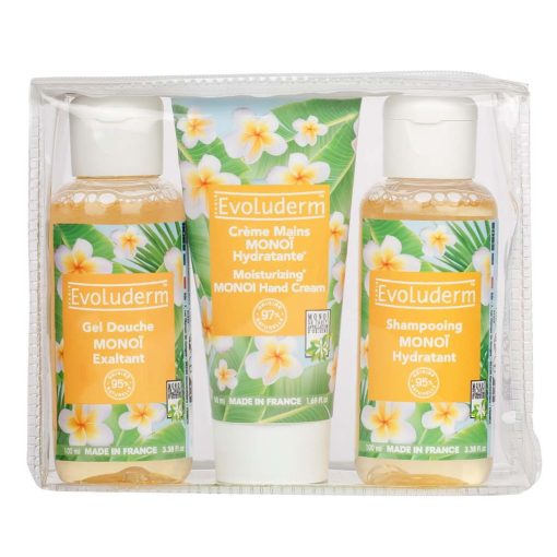 Evoluderm Travel Gift Box is a delightful set of beauty products enriched with Monoi, perfect for a relaxing and fragrant beauty routine on the go. This travel kit composed of a moisturizing shampoo, shower gel & a hand cream. Monoi Moisturizing Shampoo is enriched with Monoi from Tahiti, which is well-known for its moisturizing and protective properties. It not only cleanses your hair but also helps repair the hair fiber, leaving your hair feeling soft and smooth. Additionally, it imparts a wonderful and addictive solar fragrance to your hair. Monoi Stimulating Shower Gel also infused with Monoi, gently cleanses your skin, and leaves it with a delicious exotic scent. So, you can enjoy a tropical escape every time you shower. Moisturizing Monoi Hand Cream in this kit is designed to protect your hands from external aggressions. It provides hydration to keep your hands soft and moisturized. Its creamy texture leaves a subtle and fragrant veil on your skin, adding to the overall experience. With these 100ml bottles, this travel kit allows you to carry your essential beauty treatments without the burden of heavy luggage. The Monoi fragrance, with its exotic and suave notes, will transport you to a sunny paradise, making your beauty routine a delightful and relaxing experience. It’s a great way to pamper yourself while you’re on the go.