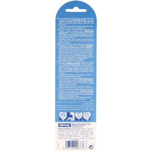 The halita tongue cleaner is specifically designed to reach the most inaccessible areas of the tongue. The tongue is the place in the oral cavity where the greatest amount of bacteria accumulates. That is why it is very important every day to remove bacterial film and food debris that build up on the tongue. This will prevent the proliferation of anaerobic bacteria that produce malodorous gases. It has two sides, one with a ridged surface and the other with a flat surface.