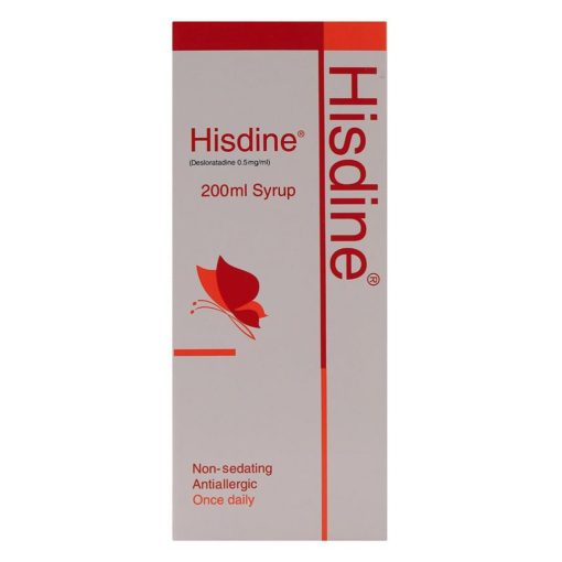Hisdine 0.5mg/ml oral syrup is an non-sedating, long acting antiallergy medicine that helps to control allergic reactions and symptoms. This syrup formulation contains 0.5mg of desloratadine per ml active ingredient which relieves symptoms associated with allergic rhinitis like sneezing, runny or itchy nose, itchy palate, and itchy, red or watery eyes. It also helps to relieve symptoms of hay fever and allergy to dust mites and also symptoms associated with urticaria. Hisdine oral syrup is suitable for adults and children above 1 year of age.