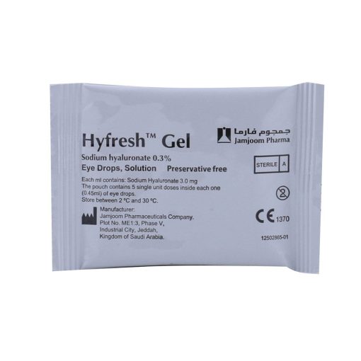 Hyfresh Gel 3 mg/mL Sodium Hyaluronate Eye Gel 0.45 mL solution is hypotonic and 1 ml solution of which contains sodium hyaluronate 3.0 mg, sodium citrate, potassium chloride, calcium chloride, magnesium chloride, sodium chloride, citric acid or sodium hydroxide (to adjust pH) and water for injection. Hyfresh Gel is well tolerated due to its unique composition and gives long lasting relief with maximum comfort.