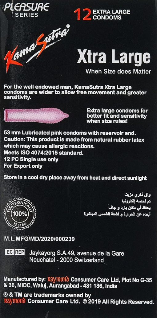 - For the well endowed man, KAMA SUTRA Xtra Large condoms are wider to allow free movement and greater sensitivity