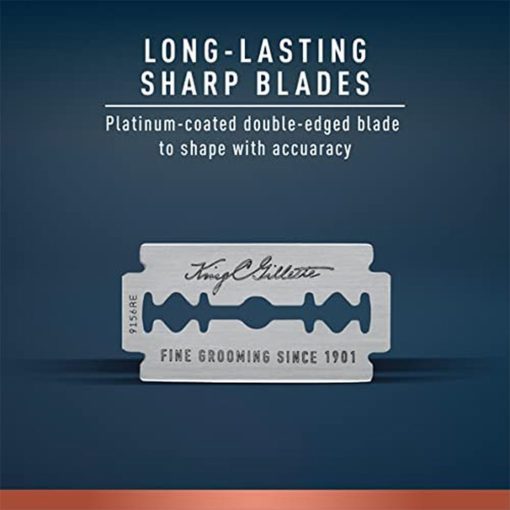King C. Gillette Best Stainless Steel Platinum Coated Blades offers precision finish and long-lasting durability. Recommended for ultimate precision in edging sideburns and creating strong beard lines. Inspired by King Camp Gillette’s original 1901 razor blades, these incredibly strong stainless steel razor blades are reinforced with durable platinum for extra strength and an anti-friction coating for a comfortable, close shave. Use with double edge safety razors. The pinnacle of over a century’s worth of innovation and expertise, and the only range that bears the name of the company’s founder: King C. Gillette. Maintaining a well-groomed beard is a craft that requires the right tools. Fueled by the spirit of the brand’s founder, the King C. Gillette line includes a complete set of precision tools and quality care products, to enable every man to create his own unique style.