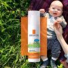 - Apply La Roche-Posay Anthelios Dermo-Pediatrics Baby Lotion just before going out on the uncovered parts of your baby. Reapply frequently and generously to maintain protection, especially after perspiring. Avoid the eye area. In case of contact, rinse them immediately and thoroughly. Avoid contact with fabrics. Keep out oh the reach of children.