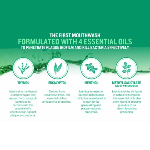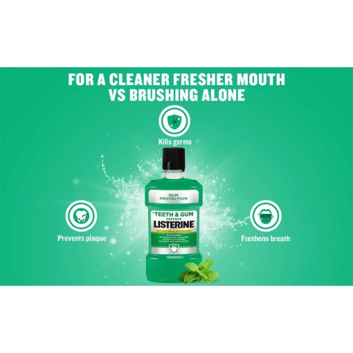 Listerine Teeth & Gum Defense Mouthwash is quick and easy to use, a 30 second “sloosh” with Listerine after brushing and flossing reaches parts of the mouth that may be missed. Used twice daily, Listerine provides 24-hour protection against plaque. Listerine products all contain the same combination of essential oils, which have been clinically proven to reduce plaque development by up to 56%. One of the key ingredient, Thymol is derived from the Eucalyptus trees, this essential oil has antibacterial properties. Eucalyptol – similar to the thymol found in natural thyme and eucalyptus, research continues to demonstrate the effectiveness of this essential oil against plaque and bacteria. Menthol – the essential oil is similar to the menthol found in natural peppermint, and is known for its germ-killing and plaque-reducing properties. Methyl Salicylate (Oil of Wintergreen) is identical to the oil found in natural wintergreen, this essential oil is often found in chewing gum due to its fresh flavor characteristics. Listerine is the next step to ensuring a healthier mouth. Since 1895, it has changed oral health care and has become the #1 leader in mouthwash. The Listerine mouthwash range is proven to reduce plaque and kill germs. The products offer a list of benefits including but not limited to helping fight bad breath causing germs, keeping teeth naturally white and caring for your gums and strengthening teeth.