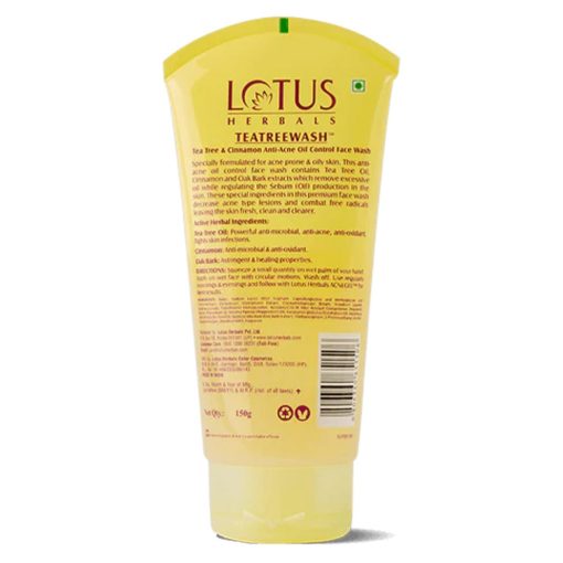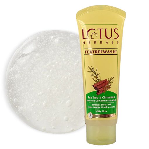 Lotus Herbals Teatree wash Tea Tree & Cinnamon Anti-Acne Oil Control Face Wash is particularly made for skin types with excess oil production and acne. For skin with a history of breakouts, tea tree oil is highly recommended. This mystical substance has healing abilities that begin to mend the skin and maintain its youthfulness immediately. It is antibacterial and works well as a face cleanser to get rid of all the dirt and oil that is trapped deep inside the pores, avoiding any form of outbreaks or acne, giving you beautiful skin. The healing properties of tea tree oil also helps to relieve skin damage. Tea tree oil’s anti-microbial and antiseptic properties help combat adversities of oily skin. It sterilizes pores clogged with bacteria and dirt. Pore size is reduced, making skin less vulnerable to contaminants that block pores. Cinnamon is rich in antioxidants that help in the healing of the scar and spots trails left on the skin by acne and pimples. The anti-fungal properties of cinnamon help fight skin blemishes, acne and excess oil in the skin. It supports blood flow to the skin and enhances the overall complexion of the skin.