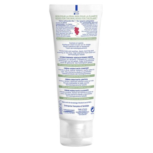 Mustela Soothing Moisturising Face Cream provides an immediate, long-lasting moisturizing effect on baby skin. It soothes to improve the appearance and sensations of tingling and tightness associated with very sensitive skin.