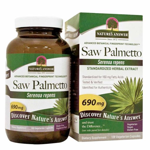 Nature’s Answer Saw Palmetto 690mg Vegan Capsules For Prostate Health promotes urine flow and prostate health. Saw Palmetto is a dietary supplement for urinary symptoms associated with an enlarged prostate gland (also called benign prostatic hyperplasia or BPH), as well as for chronic pelvic pain, migraine, hair loss, and other conditions. Many traditional societies, including Mayans and Seminole Native People of Florida have used Saw Palmetto Berries as a food, both as a tonic and to support urinary tract and prostate health. This single herb supplement is extracted from the ripe berries of the small saw palmettos plant. It combines Saw Palmettos Extract Standardized for 160 mg Fatty acids, along with full Saw Palmettos Berry. Using carefully-controlled extraction techniques, Nature’s Answer capture the holistic balance® of each herb and the value is passed on to you, Nature’s Answer customer. From plant to shelf™, you can be assured that the brand know exactly what’s in the product in your hand, and Nature’s Answer guarantee it is authentic, safe, effective, holistically balanced®, and of course Nature’s Answer®. For natural prostate support, try Saw Palmettos Standardized Herbal Extract from Nature’s Answer.