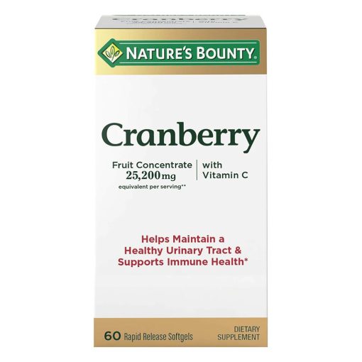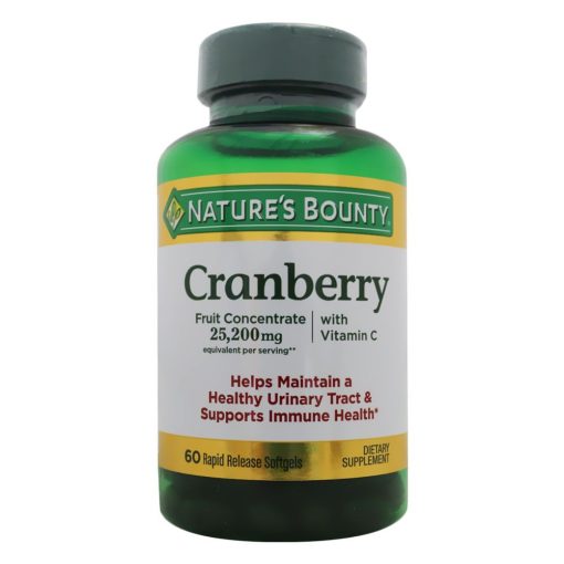 Nature’s Bounty Cranberry 25,200 mg with Vitamin C contains the equivalent of 25,200 mg per serving of fresh Cranberry fruit. Cranberries are known for their ability to help maintain a healthy urinary tract. This product also contains Vitamin C to support antioxidant and immune health, plus Vitamin E, an essential nutrient crucial for good health.