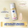 - Acts on existing pigmentation to lighten dark spots and reduce their size