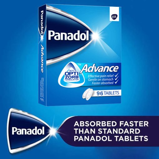 Panadol Advance contains an active ingredient – paracetamol– to create a powerful pain reliever that is clinically proven to help fight five types of tough pain: migraine headache, tension headaches, period pain, muscle aches and dental pain. Paracetamol is a mild analgesic and antipyretic, recommended for the treatment of most painful and febrile conditions. We all know that everyday aches and pains can sometimes get in the way of life. When they do, reach for an effective pain relief tablet with a fast absorption that can get to work quickly and leaves the body naturally in 24 hours – like Panadol Advance Tablets with OPTIZORB Formulation. When it comes to pain relief, nothing works faster than paracetamol to relieve pain and reduce fever, getting to work in just 10 minutes with OPTIZORB technology. The OPTIZORB formulation contains a patented delivery system which allows the tablets to deliver paracetamol (the active pain relief ingredient in Panadol) more efficiently, by breaking down faster than standard Panadol tablets. Panadol Advance Tablets with OPTIZORB Formulation provide temporary, effective relief from tension headaches, migraine, toothache, aches and pains of cold and flu, muscle aches and period pain. They also help to reduce fever. Panadol Advance releases its medicine up to 5 times faster than standard paracetamol tablets. Just like standard Panadol Tablets, those with Panadol OPTIZORB Formulation are capsule shaped and film-coated. Get effective pain relief with Panadol Advance Tablets, which releases its medicine up to 5x faster than standard paracetamol.