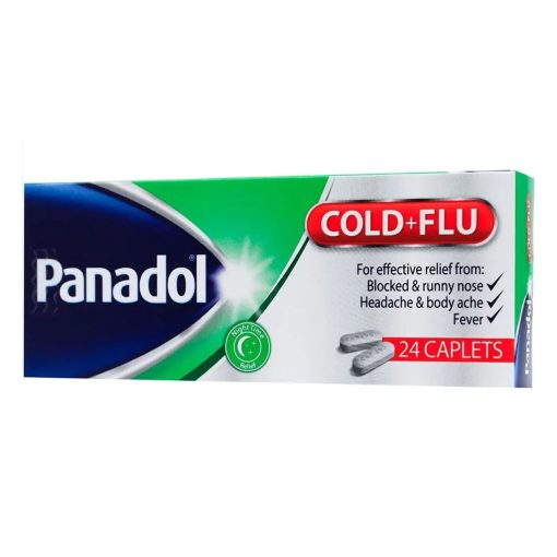 Panadol Cold and Flu Caplets helps to provide night time relief from cold and flu symptoms. This is a combination of three medicines: Paracetamol, pseudoephedrine and chlorpheniramine, which relieves cold symptoms. Paracetamol is an analgesic (pain reliever) and antipyretic (fever reducer). It blocks the release of certain chemical messengers in the brain that are responsible for pain and fever. Pseudoephedrine is a nasal decongestant which narrows the small blood vessels providing relief from congestion or stuffiness in the nose. Chlorpheniramine is an antiallergic which relieves allergy symptoms like runny nose, watery eyes and sneezing.