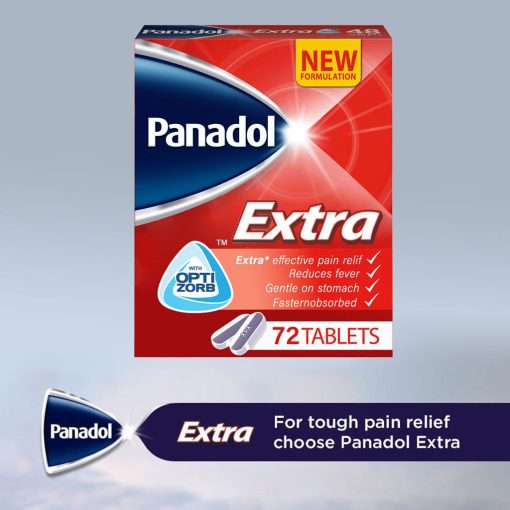 Panadol Extra Optizorb Tablets contains a combination of active ingredients – paracetamol and caffeine – to create a powerful pain reliever that is clinically proven to help fight five types of tough pain: migraine headache, tension headaches, period pain, muscle aches and dental pain. Whether it is a nasty migraine headache or painful muscle aches that are holding you back, when you are fighting against tough pain, Panadol Extra with OPTIZORB can help. The OPTIZORB formulation contains a patented delivery system which allows the tablets to deliver paracetamol (the active pain relief ingredient in Panadol) more efficiently, by breaking down faster than standard Panadol tablets. In fact, Panadol Extra with OPTIZORB are particularly good for headaches, since the use of caffeine increases the chances of achieving headache relief, while the OPTIZORB technology releases the active ingredients up to 5x faster. With the combination of paracetamol 500 mg and caffeine 65 mg, along with the advanced Optizorb technology, Panadol Extra fights tough pain including headache and period pain, it also provides back pain relief (and including lower back), tooth pain relief, neck pain relief and muscle pain relief. The combination of ingredients in Panadol Extra provides up to 37% more powerful relief than standard paracetamol, providing you effective pain relief that allows you to stay on top of your day-to-day tasks.
