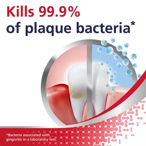 Parodontax Daily Mouthwash For Active Gum Health is specially formulated to help protect against gum problems when used with twice daily brushing. The clinically proven formula helps remove plaque and prevent further build-up, to help keep your gums healthy. It contains fluoride to strengthen teeth and prevent cavities, and helps reduce bacteria that can cause bad breath. One of the main causes of gum disease is the plaque bacteria that builds up around, on and in between your teeth. If it is not removed by regular brushing and flossing it can irritate your gums, causing them to become red and swollen, and they may bleed when you brush your teeth. This stage of gum disease is called gingivitis. If these early signs of gum disease are not treated, then it can eventually progress to one of the most serious forms of gum disease, periodontitis, which is irreversible and can lead to tooth loss. Parodontax Daily Oral Rinse is designed to kill 99.9 percent of plaque bacteria that builds up along the gum line, one of the main causes of bleeding gums. With daily use, this mouth rinse forms an antibacterial shield that helps prevent the build-up of plaque bacteria to help take back your gum health. This antiplaque and antigingivitis mouthwash comes with a mint flavor to help keep your mouth fresh and clean. For best results, rinse with this antibacterial mouthwash daily after brushing your teeth. This Mouthwash leaves ones mouth feeling clean and with breath that stays fresh for longer than most other agents. Used with the same brand toothpaste, it’s a good dental health promoter all around.