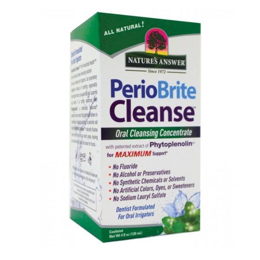 PerioBrite Cleanse Oral Cleansing Concentrate is an all-natural, deep-cleansing solution for use in dental oral irrigators. Its proprietary vegetarian formula of soothing responsibly wild-crafted herbs plus essential oils supports oral health. It’s further enhanced with Phytoplenolin, holistically balanced patented herbal extract that has been shown in independent laboratory studies to promote cell vitality.