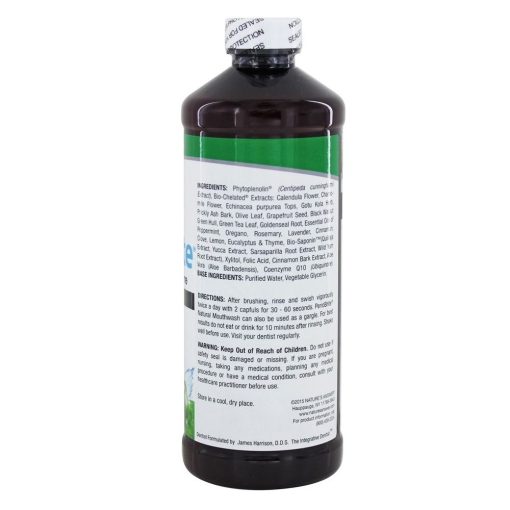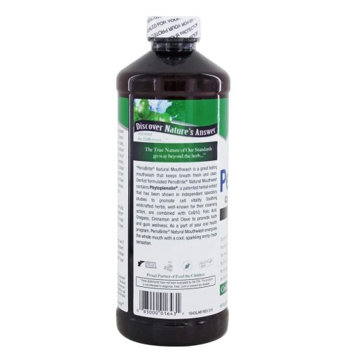 PerioBrite natural mouthwash is a great tasting mouthwash that keeps breath fresh and clean. Dentist formulated this mouthwash with Phytoplenolin, a patented herbal extract that has been shown in independent laboratory studies to promote cell vitality. Soothing wild crafted herbs, well-known for their cleansing action, are combined with CoQ10, folic acid, oregano, cinnamon and clove to promote tooth and gum wellness.