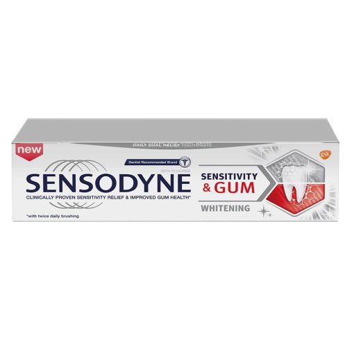 Sensodyne Sensitivity and Gum Whitening Toothpaste is a daily dual relief toothpaste, clinically proven to relieve teeth sensitivity by building protective layer over sensitive areas and improves gum health with twice daily brushing, whilst also working to restore the natural whiteness of your teeth.