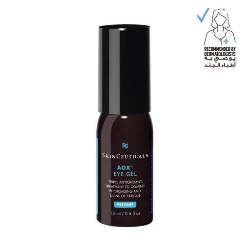 SkinCeuticals AOX+ Eye Gel is an anti-aging and anti-fatigue gel indicated for the eye contour. It is a groundbreaking serum-in-a-gel that contains a synergistic combination of topical C Vitamin (L-ascorbic acid 5%) and ferulic acid (0.5%) for photoprotective, neutralizing and anti-inflammatory action and Phloretin (1%) for an antioxidant and pigment regulating action. Along with powerful botanicals, the eye gel protects the delicate eye area from atmospheric skin aging – environmental damage and premature signs of aging caused by free radicals from UVA/UVB, infrared radiation (IRA), and ozone pollution (O3). This refreshing eye serum targets visible signs of aging such as crow’s feet and fine lines, and improves the appearance of puffiness, fatigue, and under eye circles. A synergistic antioxidant combination helps neutralize free radicals, prevent future signs of aging, and improve the appearance of under eye circles, fine lines, wrinkles, and uneven skin tone. Ruscus aculeatus helps reduce the appearance of puffiness and caffeine helps improve the look of under eye circles for a more vibrant appearance.