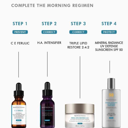 SkinCeuticals C E Ferulic Serum is an antioxidant daytime serum for normal to dry and sensitive skin, with signs of aging, discoloration and dehydration. This patented daytime vitamin C serum delivers advanced environmental protection and improves the appearance of fine lines and wrinkles, loss of firmness, and brightens skin’s complexion. Now clinically proven to reduce combined oxidative damage from free radicals generated by UV, Ozone, and Diesel Exhaust by up to 41%. C E Ferulic features a synergistic antioxidant combination of 15% pure vitamin C (L-ascorbic acid) lauded for its superior antioxidant benefits. This highly potent form of pure vitamin C helps neutralize free radicals and protect against oxidative stress while providing visible anti-aging benefits. 1% vitamin E (alpha tocopherol) pure form of vitamin E neutralizes free radicals and replenishes skin lipids. It has been proven to act synergistically with vitamin C, and 0.5% ferulic acid to enhance protection against environmental damage caused by free radicals that can contribute to atmospheric aging. It is tested suitable for use post-laser, always consult with a physician for individual post-procedure care.