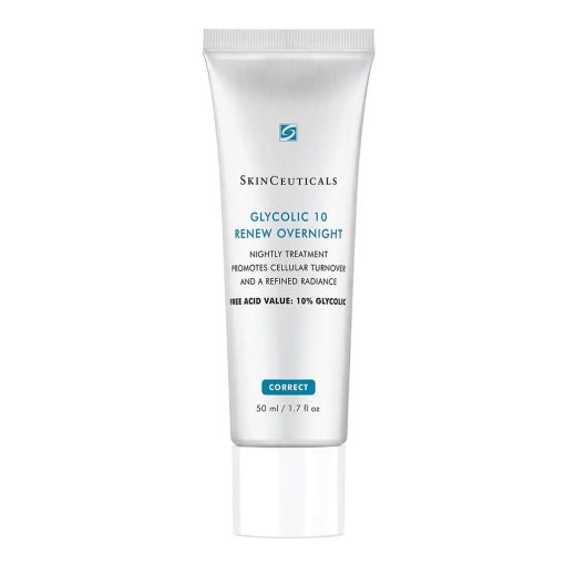 SkinCeuticals Glycolic 10 Renew Overnight Cream is formulated with a free acid value of 10% glycolic acid, allowing it to work at a true 10% concentration proven optimal in promoting effective exfoliation and natural cell turnover. Free acid value refers to the true strength of a glycolic acid product, and is affected by both the concentration of acid and the pH of the formula. This potent night cream is synergistically blended with 2% phytic acid to promote skin clarity and brightness, and a triple action-soothing complex to help support the skin barrier. Proven tolerable for nightly use, Glycolic 10 Renew Overnight improves the appearance of skin texture and tone to promote a bright complexion and glowing skin. The ingredients include 10% Glycolic Free Acid Value: Derived from sugar cane, this powerful fruit acid helps stimulate skin’s natural exfoliation process and minimizes the buildup of dead skin cells, resulting improvement in the appearance of skin texture, tone, and a brighter complexion. 2% Phytic acid: Naturally present in legumes and seeds, this potent ingredient provides dual-action exfoliation and skin brightening effects. It helps to inhibit the impact of skin aggressors that can cause dullness, promoting skin clarity and glow. 1% Soothing complex: Featuring a combination of natural oils and botanicals, including jojoba and sunflower seed, this wax forms a protective, breathable layer on skin to help lock in hydration and provide comfort.