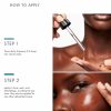 - Using fingertips, apply 2-3 drops to the entire face, neck, and chest. Avoid the eye area.