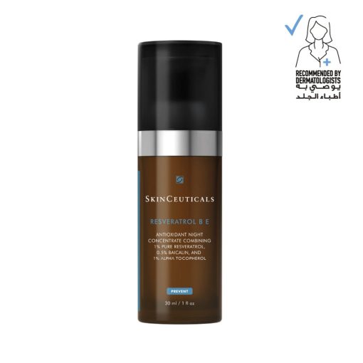 SkinCeuticals Resveratrol BE is a first-of-its kind night treatment that combines a maximized concentration of 1% pure, stable resveratrol, synergistically enhanced with 0.5% baicalin and 1% pure vitamin E (alpha tocopherol) for optimized anti-aging antioxidant performance. This patented antioxidant cocktail neutralizes free radicals, supports skin’s natural antioxidant defenses, and reveals visible radiance and firmness. Resveratrol B E is a powerful and essential product that is an overnight concentrate of antioxidants that works as you sleep to build up and restore the skins ability to prosper. 1% resveratrol- Derived from the knotweed plant, resveratrol benefits include strengthening skin’s natural antioxidant defense system to help neutralize free radicals, 0.5% baicalin – A flavonoid antioxidant derived from the roots of Baical Skillcap, baicalin is a potent broad spectrum antioxidant, 1% alpha tocopherol – The most abundant, pure form of vitamin E neutralizes free radicals and replenishes skin’s lipids.
