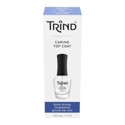 - Apply 1 or 2 layers of TRIND Caring Top Coat over dry nail polish for a glossy finish and to protect your manicure.