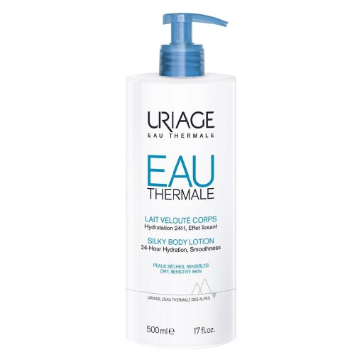 Uriage Eau Thermal Silky Body lotion is a specially formulated to provide intense hydration and smooth texture to skin. This silky fluid instantly fuses with your skin and leaves your skin more supple and light, your body is wrapped in softness and comfort. This unctuous lotion is made with hydro-thermal complex containing Uriage thermal water, shea butter and hyaluronic acid. Uriage thermal water is 100% pure and natural; it provides moisturizing and soothing effect on skin and reinforces the cutaneous barrier. Shea butter leaves the skin supple and durably moisturized and hyaluronic acid hydrates the skin. The lotion is formulated to maintain the skin’s moisture content for a lasting 24-hour hydrating effect, ensuring your skin stays soft and supple throughout the day. It helps lock in moisture effectively and improves the resilience of sensitive skin. It also helps defend against various signs of skin sensitivity, such as a weakened skin barrier, irritation, roughness, tightness, and dryness. On study, 100% of people notice immediate moisturization and 95% observe immediate comfort after application.