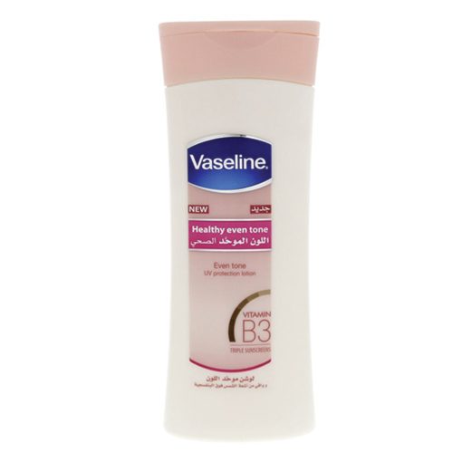 Vaseline Healthy Even Tone UV Protection Lotion offers advanced brightening and moisturization for healthy looking, radiant, and even skin. It contains natural Vitamin B3 and antioxidants which help skin look brighter by working deep inside the skin inhibiting melanin transfer and helping to reduce uneven tone and dark spots